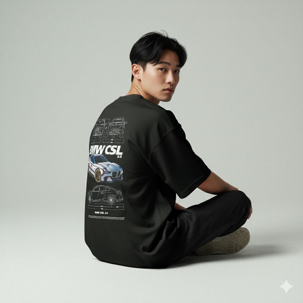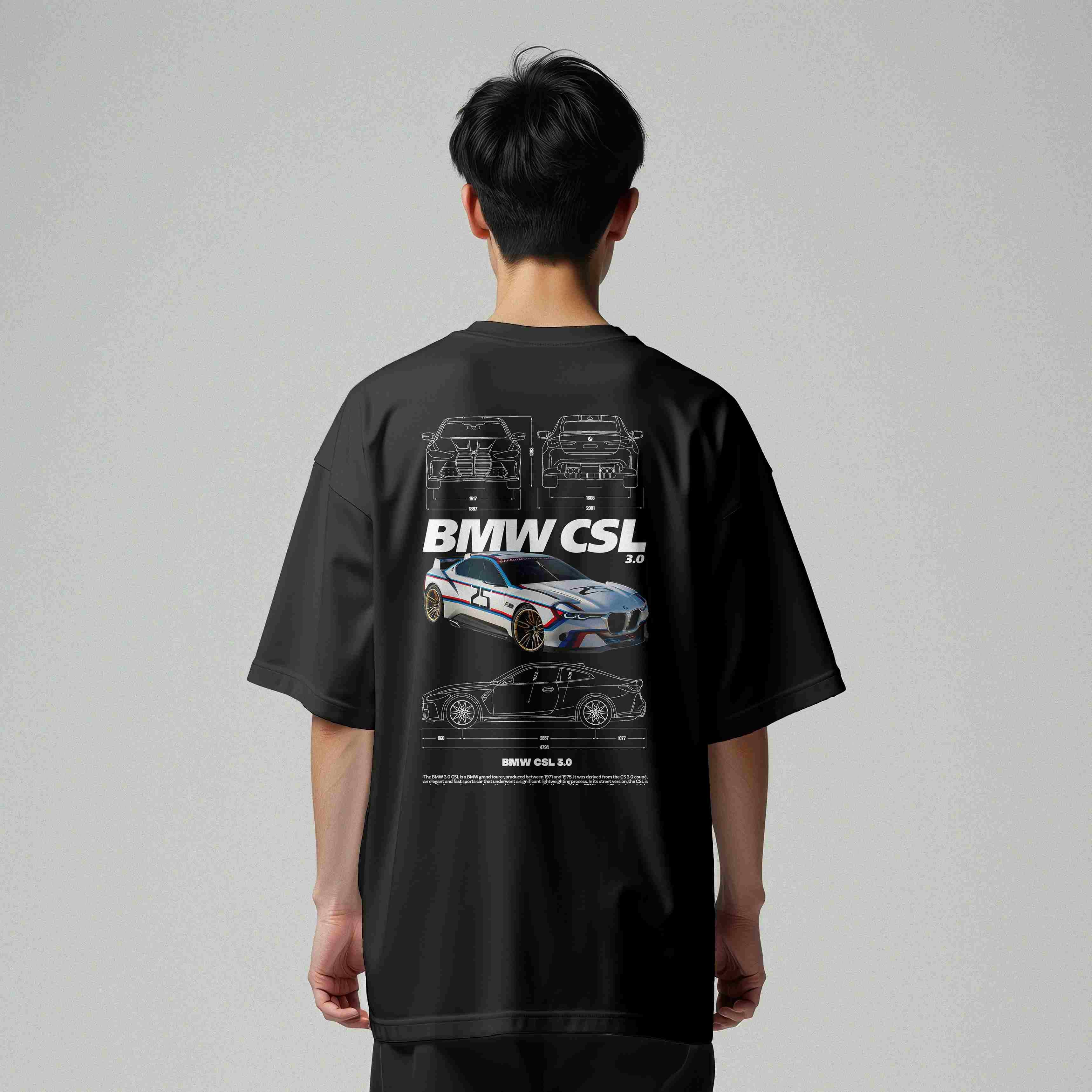 Show your passion with this BMW CSL 3.0 engineering-style blueprint T-shirt. Designed for automotive enthusiasts, racers, and car collectors.